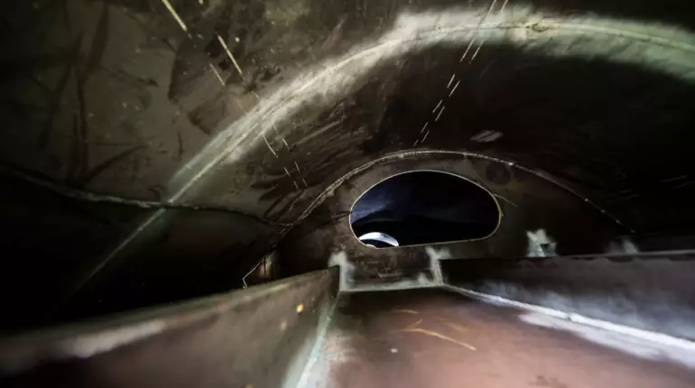 Bei einer Segmentlänge von 16 Metern wären bei der bislang verfügbaren Ausrüstung für die Erledigung der Schweißaufgaben im Inneren des Klappenkörpers mindestens zwei dieser Zugänge erforderlich gewesen. Das hätte zur Folge gehabt, dass die nicht benötigten Zugänge wieder verschweißt und die Nähte auf Herz und Nieren kontrolliert hätten werden müssen. Zudem hätten die Schweißer die Schweißstromquelle inklusive Drahtvorschubgerät mit ins Innere des Werkstücks nehmen müssen.