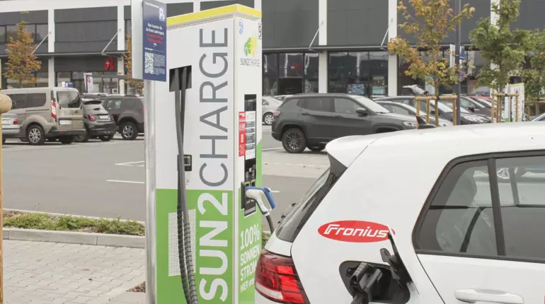 Günstig und bequem das E-Auto laden, während man die Einkäufe erledigt. Für Kundinnen und Kunden im Raum Mainz-Kostheim (D) hat sich dieser Wunsch erfüllt. Neben einem großen Nahversorgungszentrum betreibt die SUN2CHARGE GmbH einen Solar-Ladepark, der Sonnenstrom zu 100 % selbst erzeugt und damit die solarbetriebene Infrastruktur für E-Mobilität im Umkreis revolutioniert. Realisiert wurde das Großprojekt ausschließlich mit Fronius Wechselrichtern.