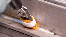 Después de la limpieza, el proceso de pulido garantiza un revestido de acero inoxidable constantemente brillante y mejora el proceso de pasivación del acero. Además, el MagicCleaner ofrece la opción de imprimir permanentemente revestidos de acero inoxidable, la alternativa perfecta a las calcomanías o el grabado láser.